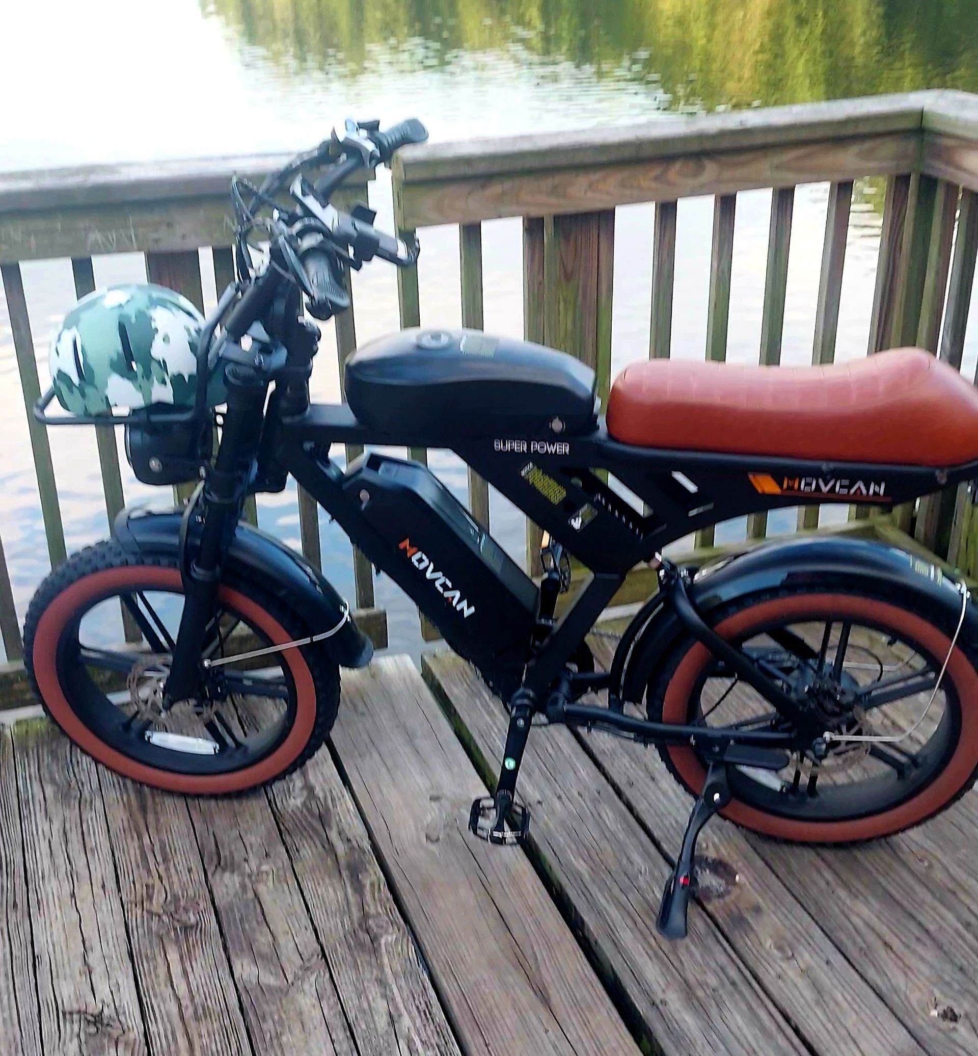This package will have the top of the line moped/motorcycle/cafe racer style type bikes! Just like the owner's EBike (Movcan V30 Max), features may include a dual battery for up to 100 miles round trip! Really good full suspension, 20x4 inch fat tires for more stability and even more capabilities for rough terrain, hydraulic brakes, and much more! This will be the only Tier where the option to add on amenities will be available. Add-ons would include items such as an EBike speaker.
